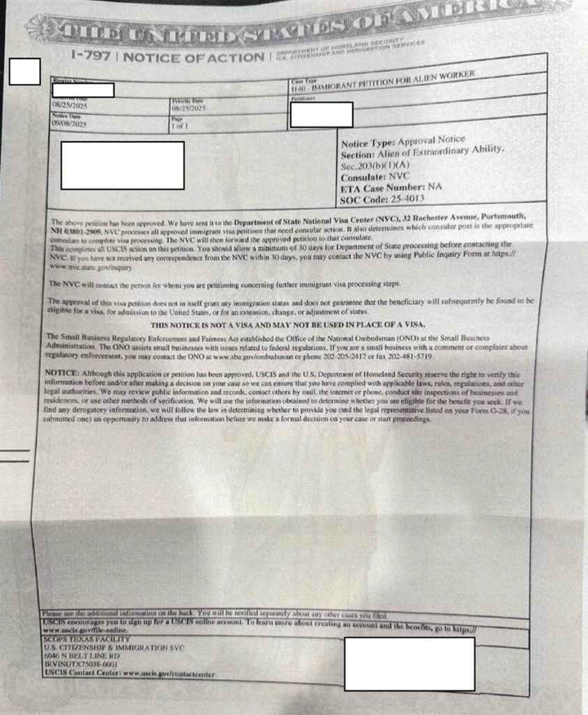 在递交第二次申请后,仅仅 14天,P先生便收到了美国移民局的批准通知。与此同时,美国某知名大学也向他发出了聘请邀请,P先生将以讲师身份,继续在美国教育舞台上为更多年轻人传道解惑,推动教育理念的革新。