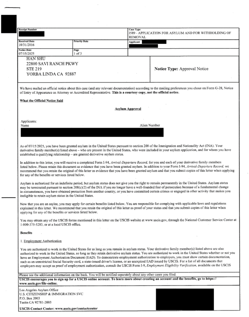 催办令加快等待时间,庇护顺利获批